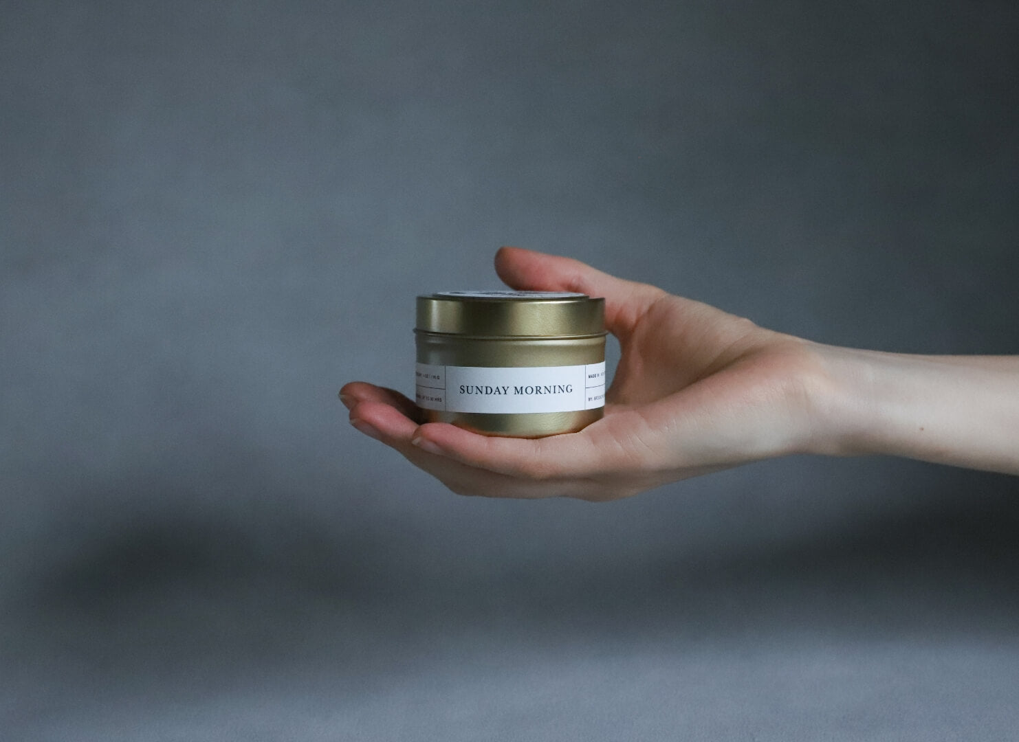 小さな金色の缶は、思いついた場所で気軽にキャンドルを炊くチャンスをくれます。