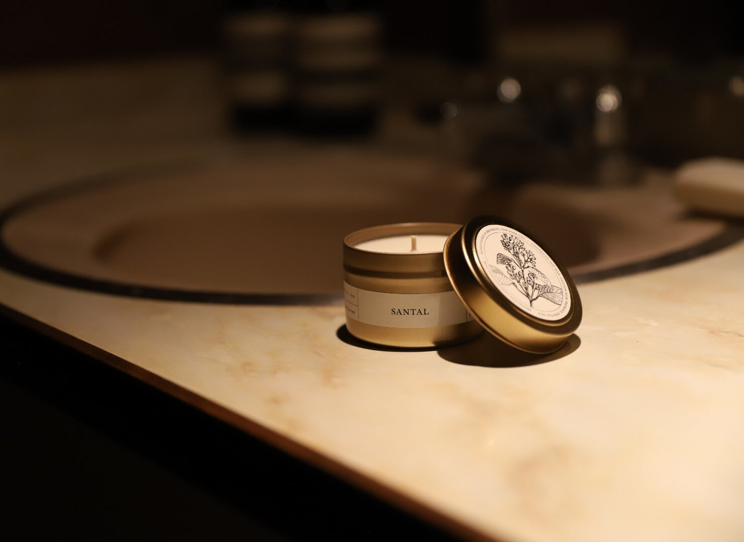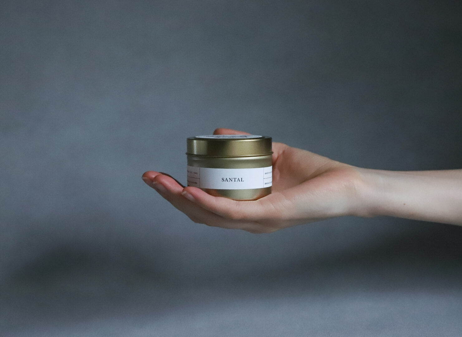 小さな金色の缶は、思いついた場所で気軽にキャンドルを炊くチャンスをくれます。