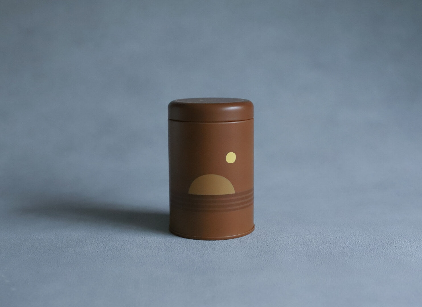 カリフォルニアの風景にインスパイアされたアースカラーモチーフ、太陽、地平線を描いたパッケージデザイン。