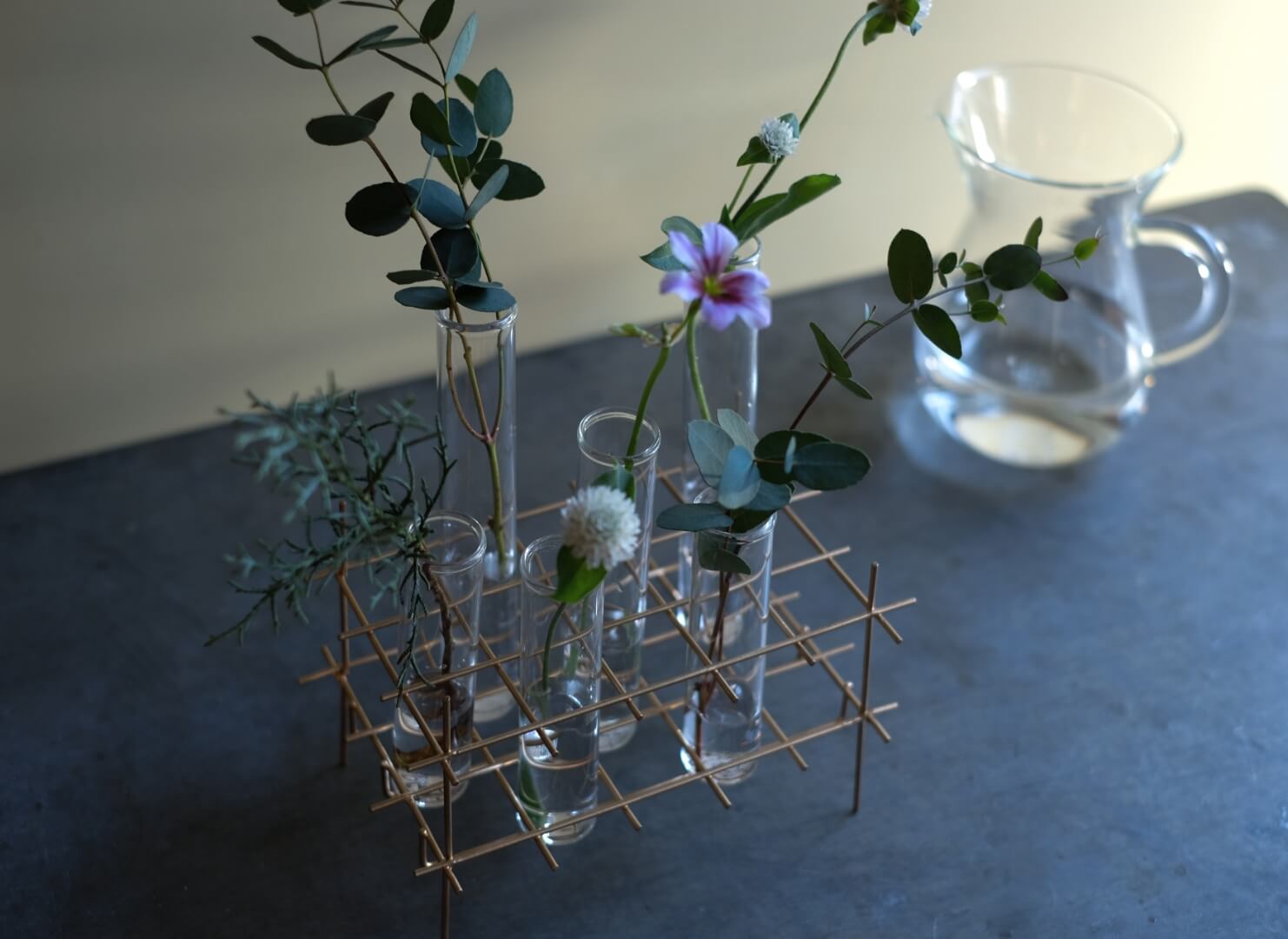 ガラスチューブは3種類の異なった長さのセットになっていて、高低差があることで軽やかな印象です。